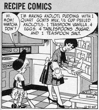 Ceege, I had an axolotl as a pet when I was a teenager. I fed him flies and hamburger. When we couldn’t keep him any longer, we put him out at a lake. Shhh. Don’t tell anyone. Also I had a dream, after watching The Seven Faces of Dr. Lao that the axolotl grew too big for the bowl he was in, and trashed the house.